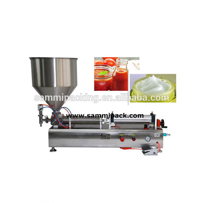 GFC-serie semi-automatische vulmachine zuigervuller. Aangedreven door een cilinder en zuiger gemaakt van materialen met VIER-wegkleppen die de stroom van materialen regelen, en een magnetische reed-schakelaar die de cilinderroute regelt, kan worden geregeld vulvolume.