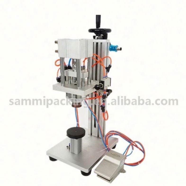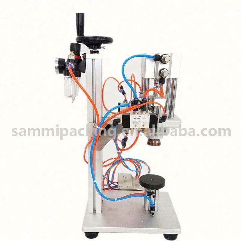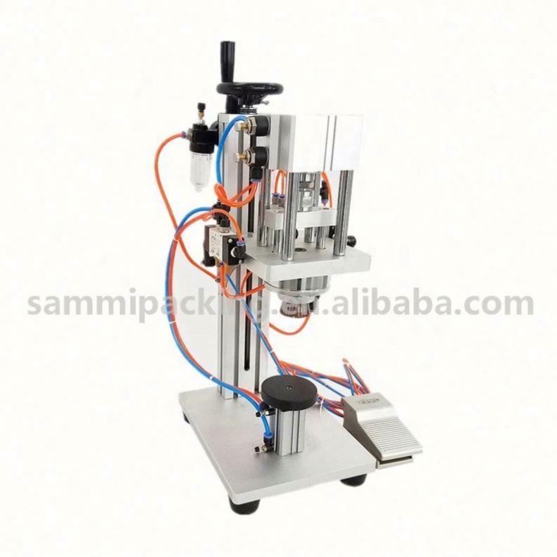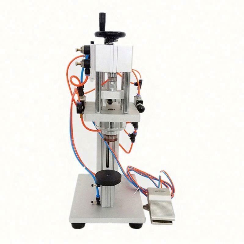 De parfümcrimpmachine is een soort klemkappen sluitmachine. Het is geschikt voor het sluiten van spraykappen.De machine gebruikt de klem om de dop te sluiten en bevestigen op de rand van de fles mond.De hele machine bestaat uit de machine, het tafeloppervlak, het klemapparaat en het pneumatische besturingssysteem.
